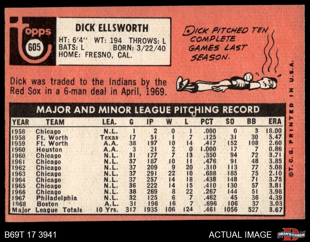 1969 Topps #605 Dick Ellsworth 3 - VG