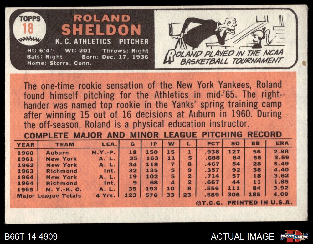 1966 Topps #18 Roland Sheldon Front Thumbnail