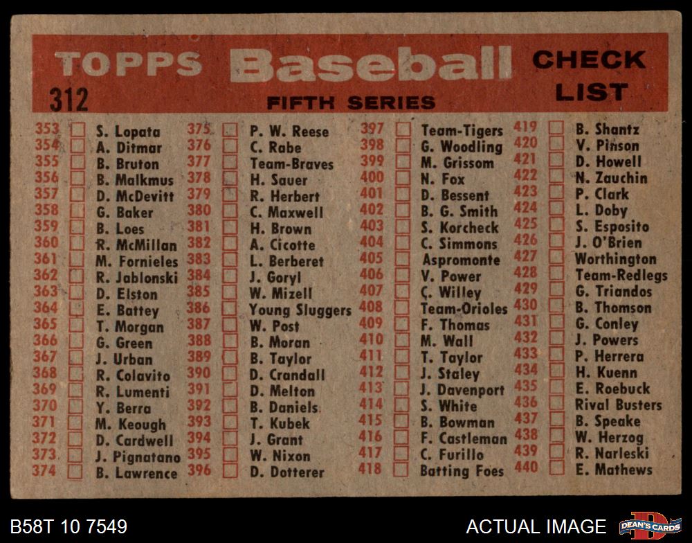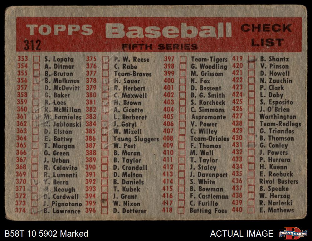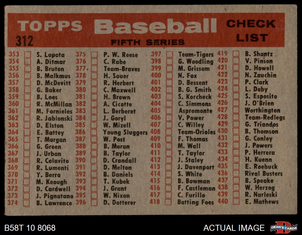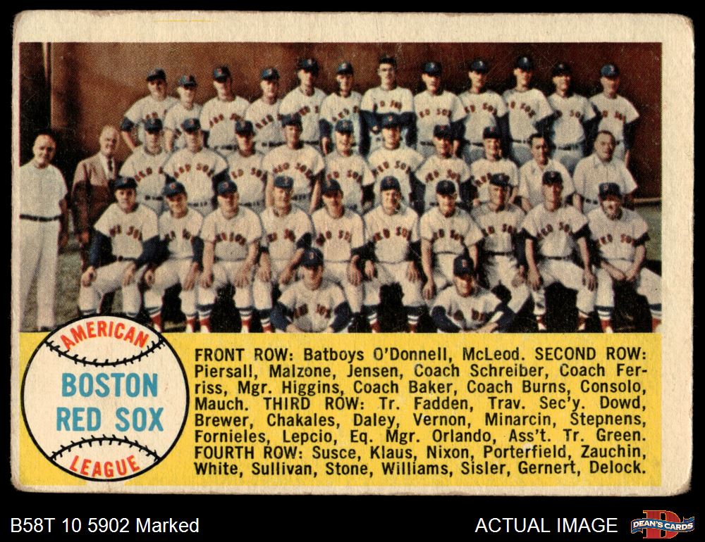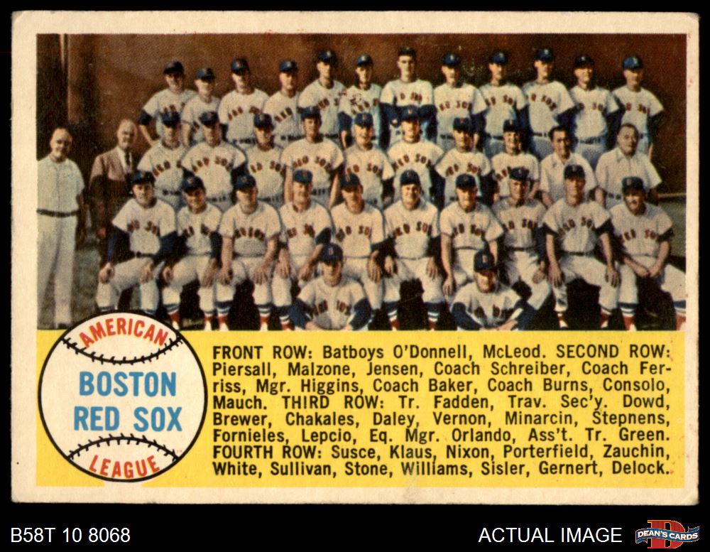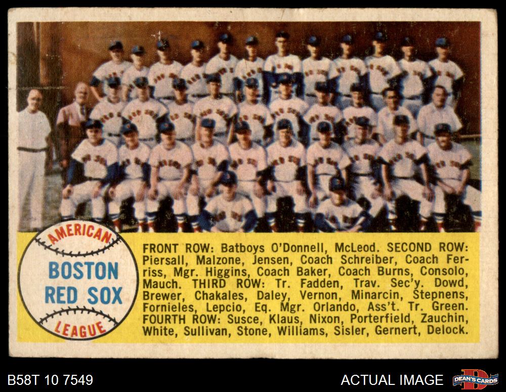 1958 Topps #312 Red Sox Team Checklist