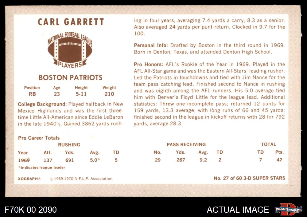 1970 Kellogg's #27 Carl Garrett 7 - NM