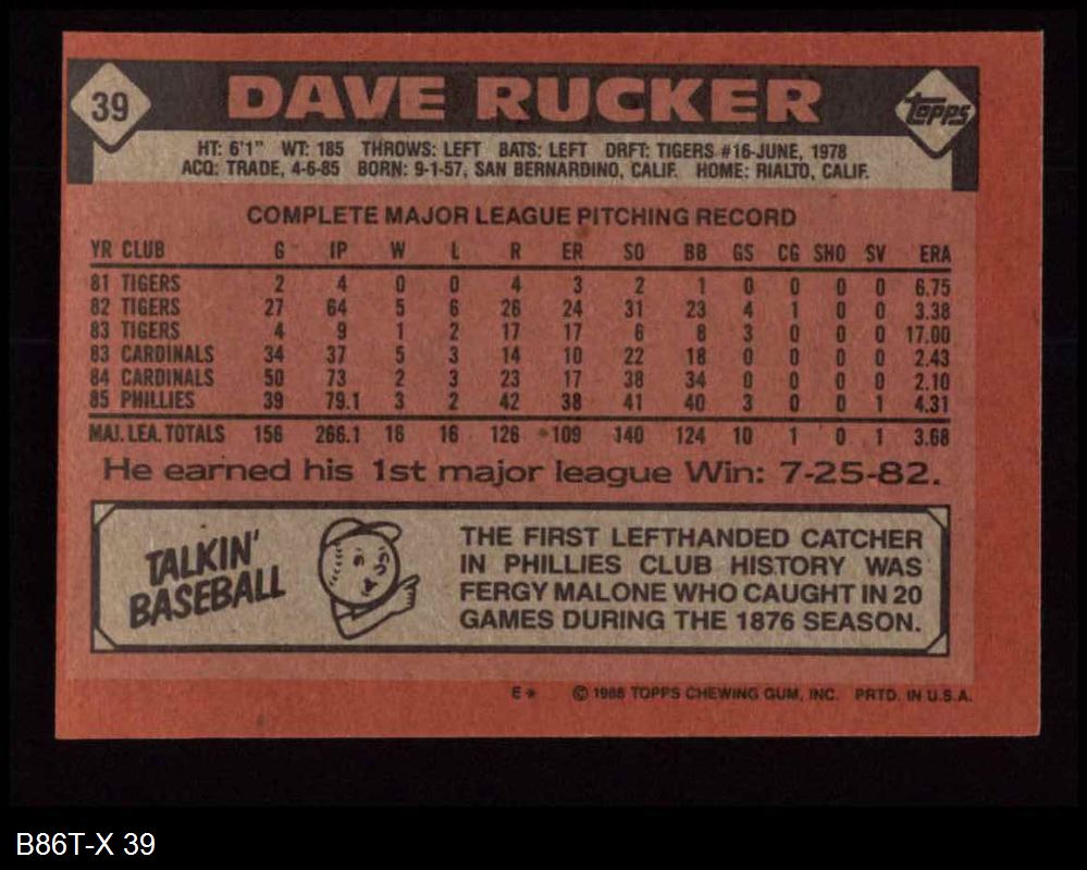 1986 Topps #39 Dave Rucker 8 - NM/MT