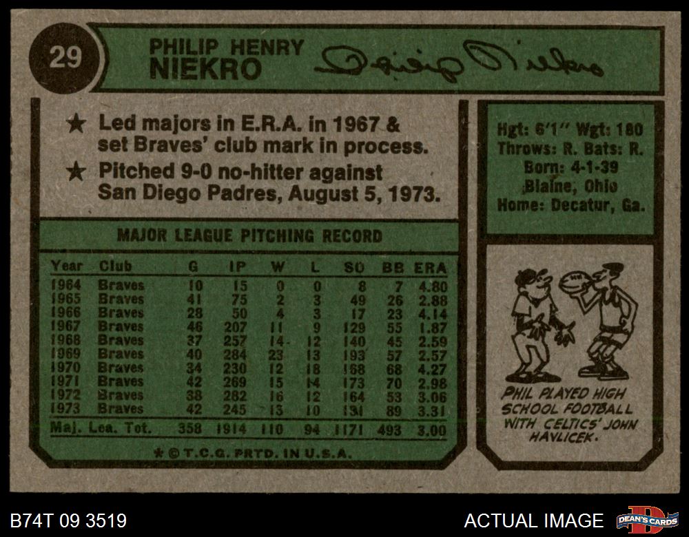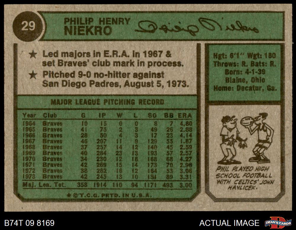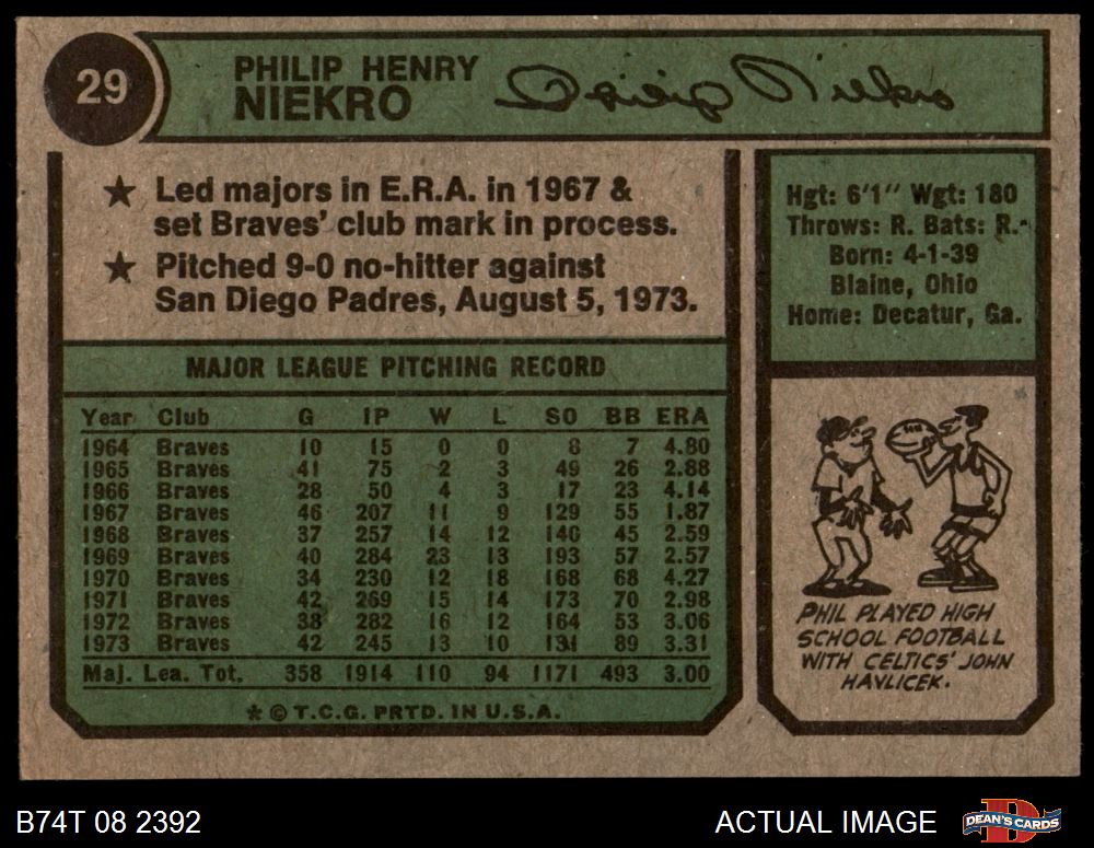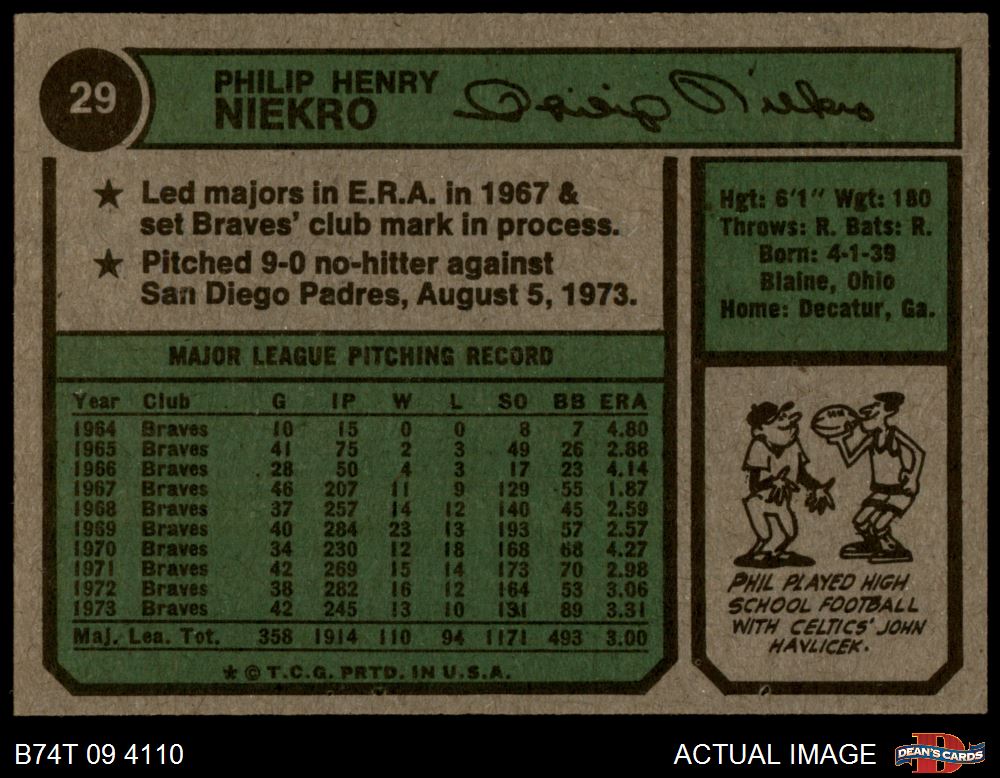 1974 Topps #29 Phil Niekro 6 - EX/MT