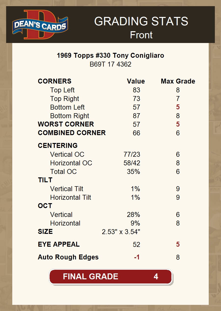1969 Topps #330 Tony Conigliaro 4 - VG/EX