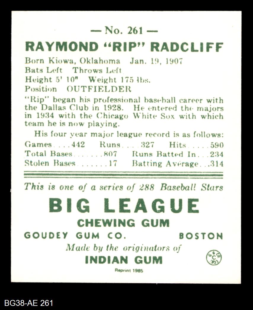 1938 Goudey Heads-Up Reprint #261 Rip Radcliff 8 - NM/MT