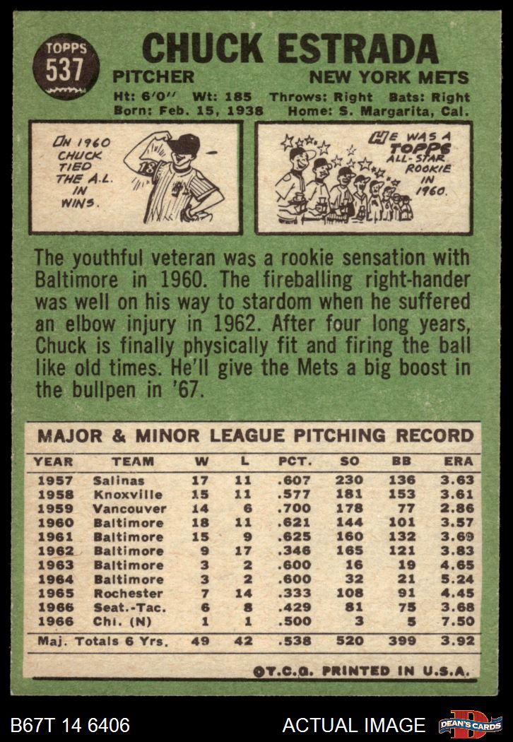 1967 Topps #537 Chuck Estrada 4 - VG/EX