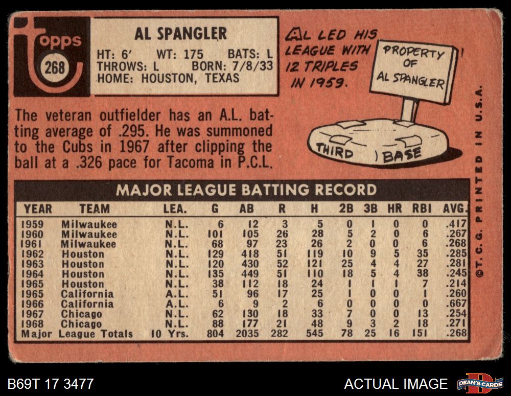 1969 Topps #268 Al Spangler 1 - POOR