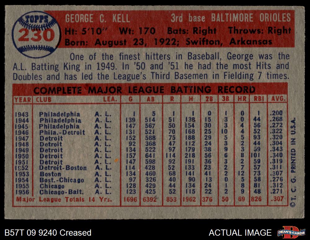 1957 Topps #230 George Kell 3 - VG