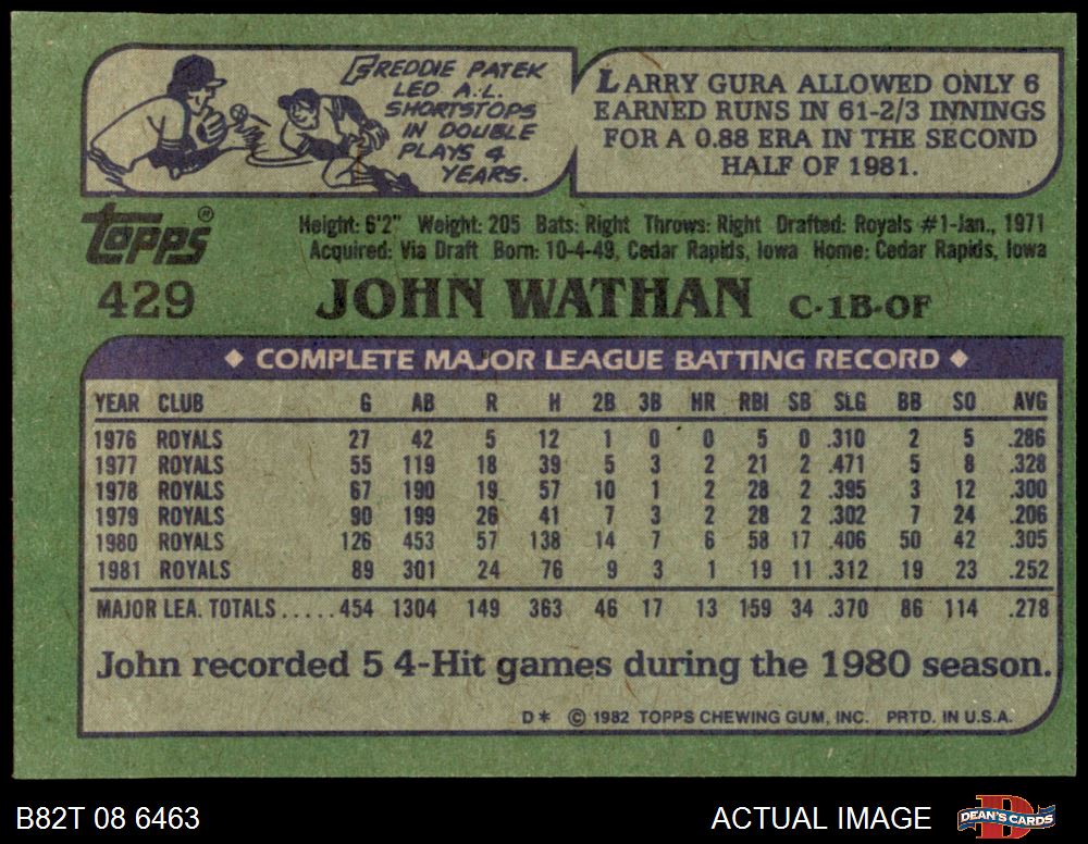 1982 Topps #429 John Wathan 3 - VG