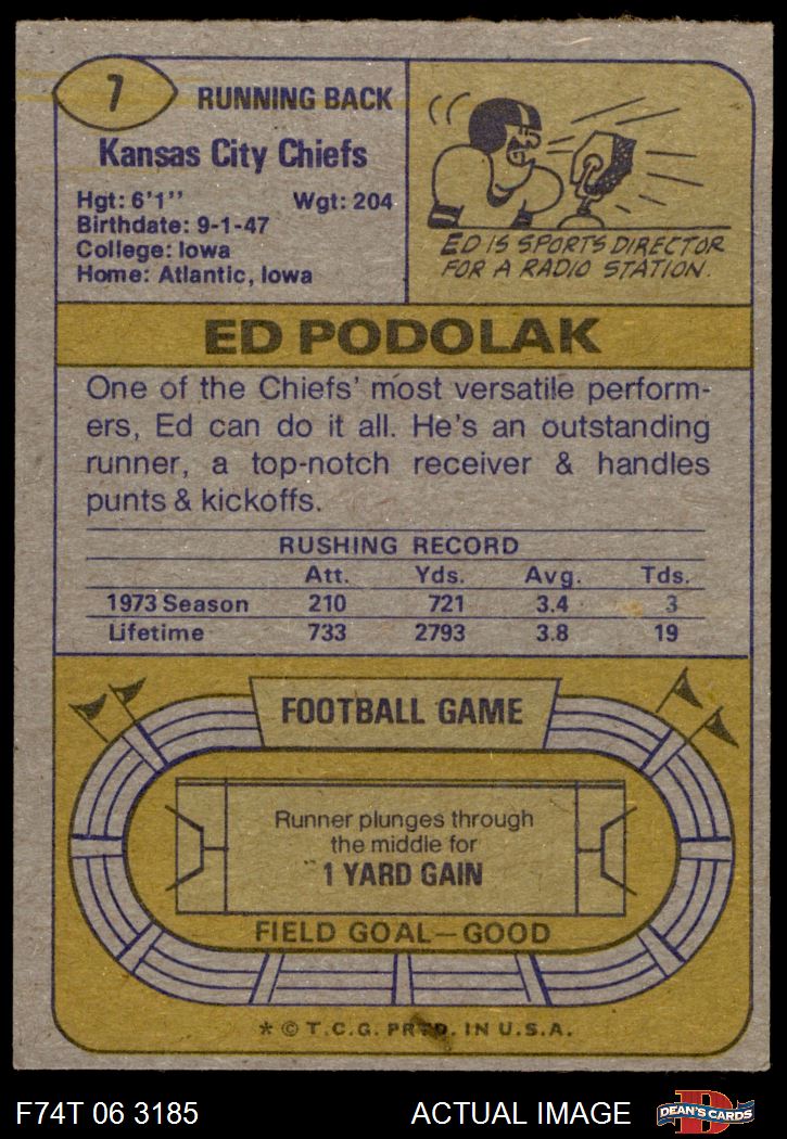 1974 Topps #7 ONE Ed Podolak 4 - VG/EX