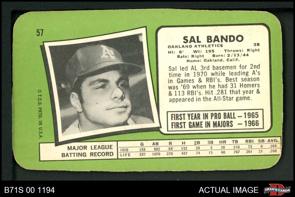 1971 Topps Super #57 Sal Bando 4 - VG/EX