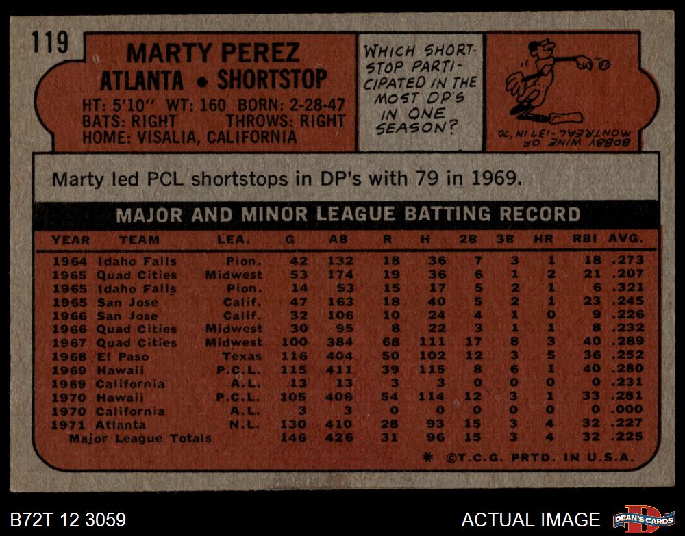 1972 Topps #119 Marty Perez 4.5 - VG/EX+
