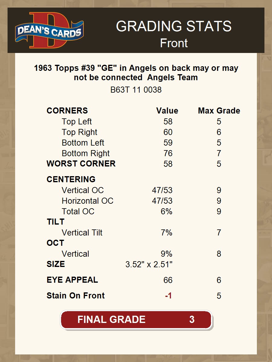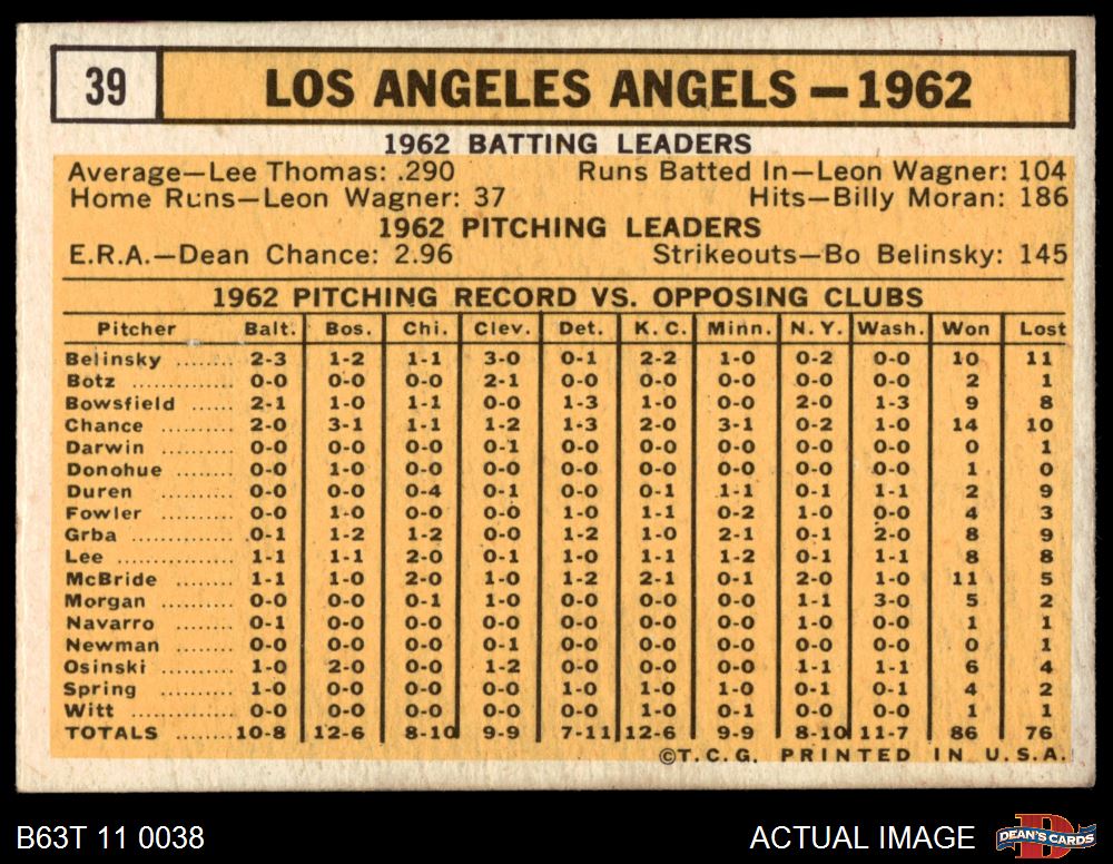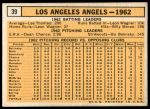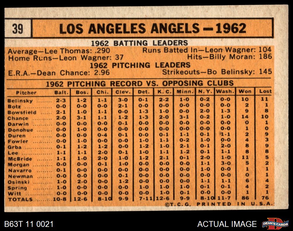 1963 Topps #39 "GE" in Angels on back may or may not be connected Angels Team 3 - VG
