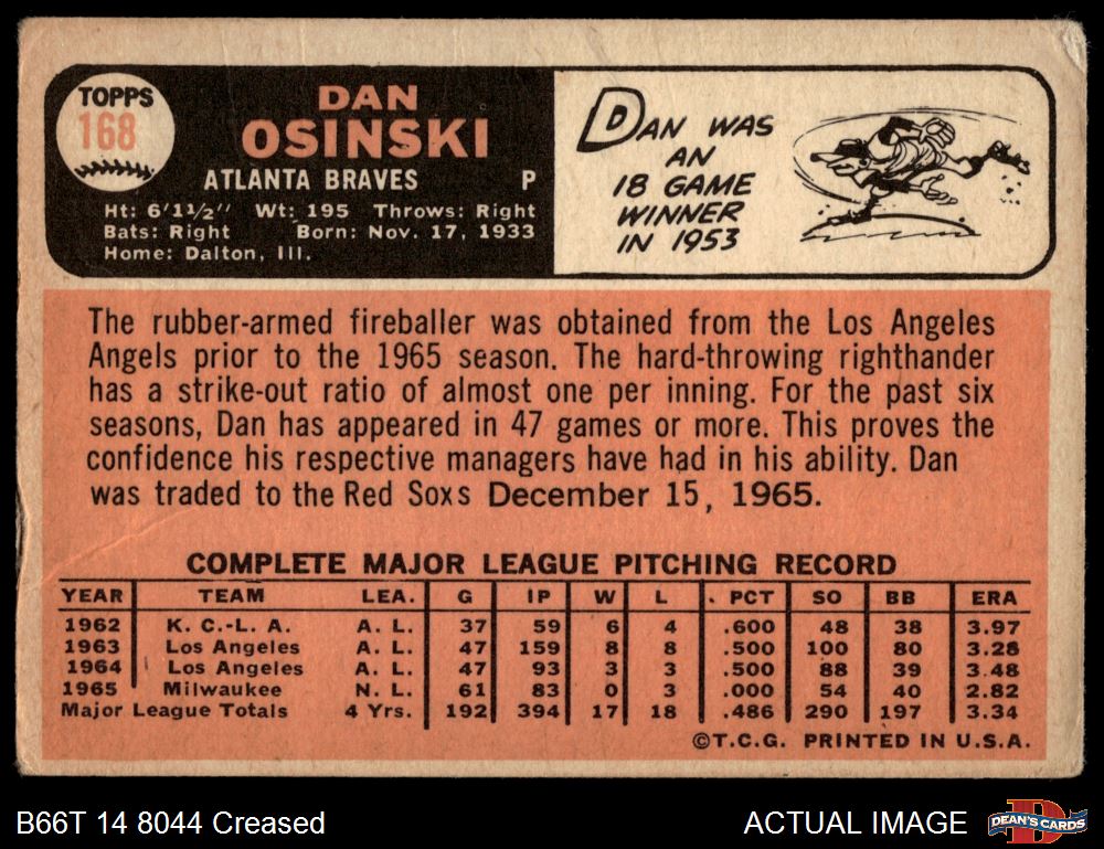1966 Topps #168 Dan Osinski
