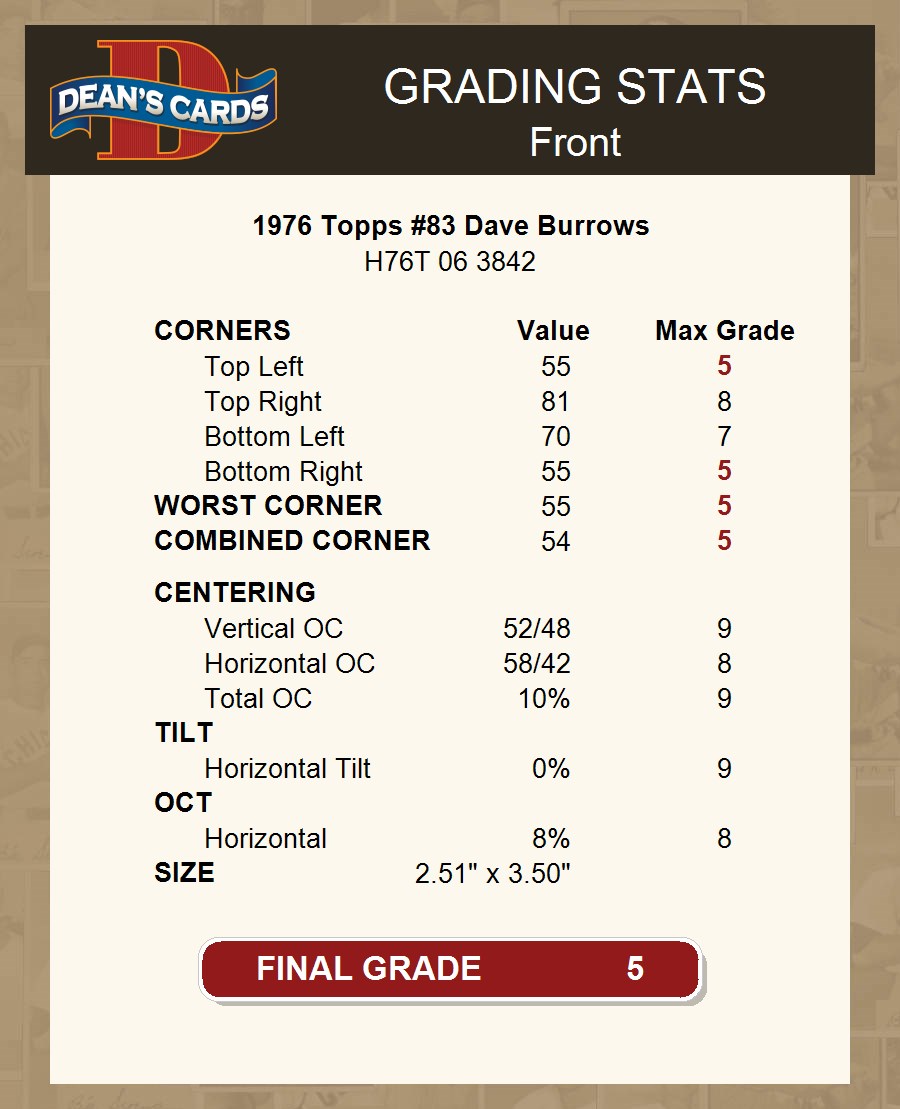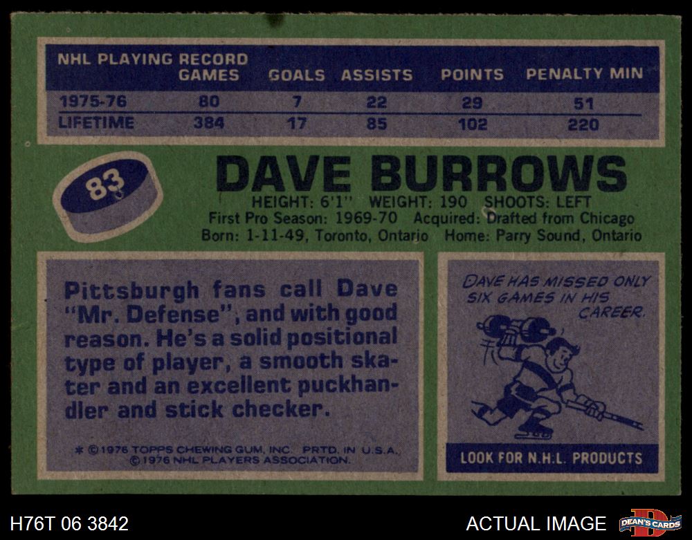1976 Topps #83 Dave Burrows 5 - EX