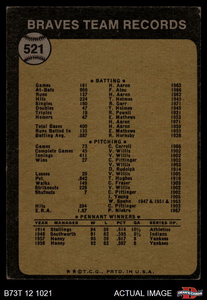1973 Topps #521 Braves Team 2 - GOOD