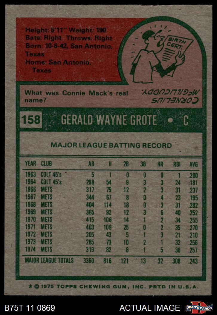 1975 Topps #158 Jerry Grote 6 - EX/MT