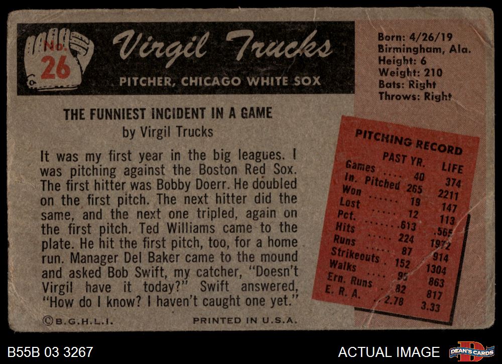 1955 Bowman #26 Virgil Trucks 1 - POOR