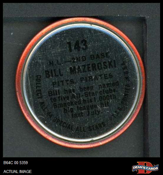 1964 Topps Coins #143 - Bill Mazeroski All-Star 5 - EX