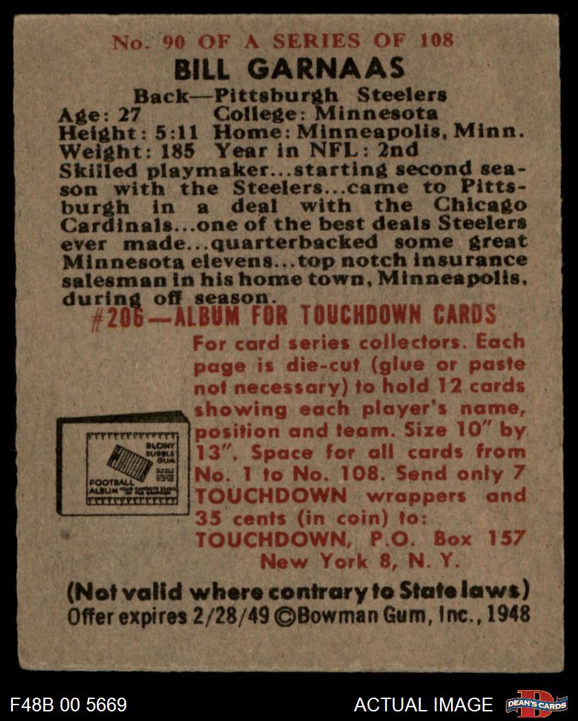 1948 Bowman #90 Bill Garnaas 4 - VG/EX