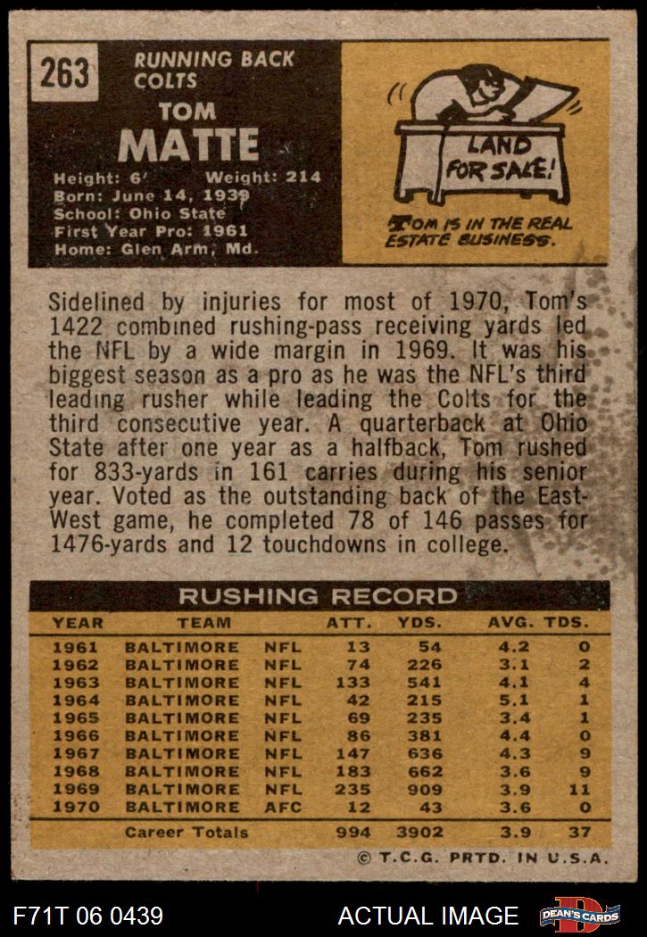 1971 Topps #263 Tom Matte 5 - EX