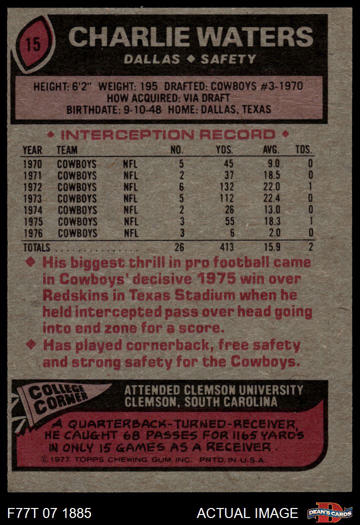 1977 Topps #15 Charlie Waters