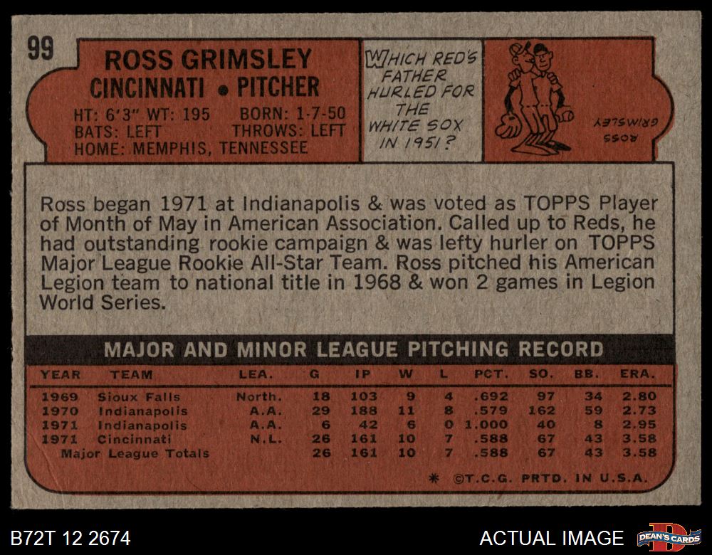 1972 Topps #99 Ross Grimsley 5 - EX
