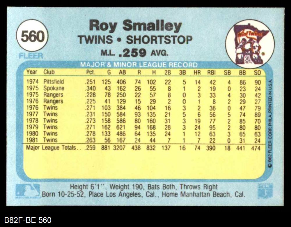 1982 Fleer #560 Roy Smalley 8 - NM/MT
