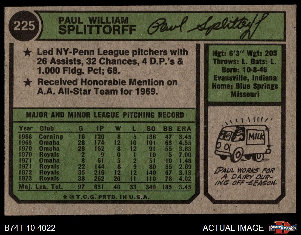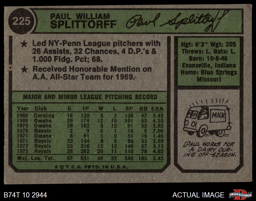 1974 Topps #225 Paul Splittorff