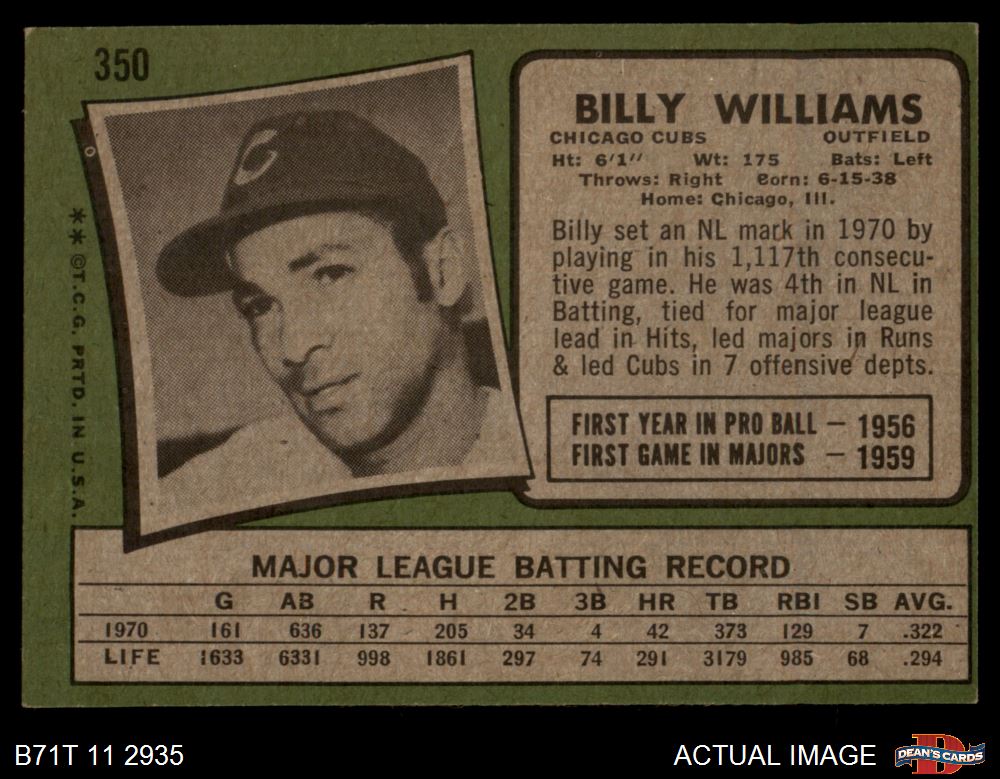 1971 Topps #350 Billy Williams 4 - VG/EX