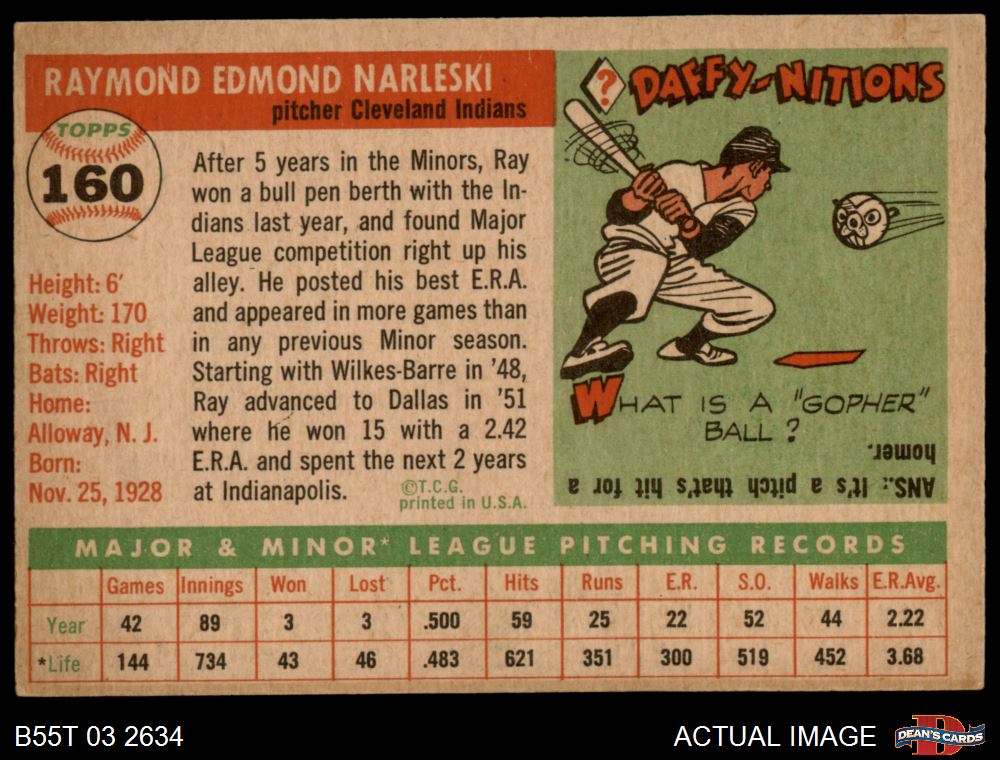 1955 Topps #160 Ray Narleski 4 - VG/EX