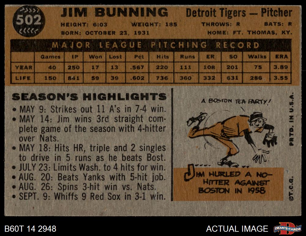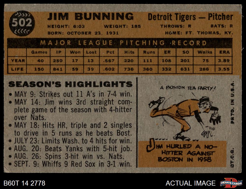 1960 Topps #502 Jim Bunning