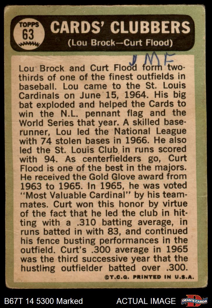 1967 Topps #63  -  Lou Brock / Curt Flood Cards Clubbers Front Thumbnail
