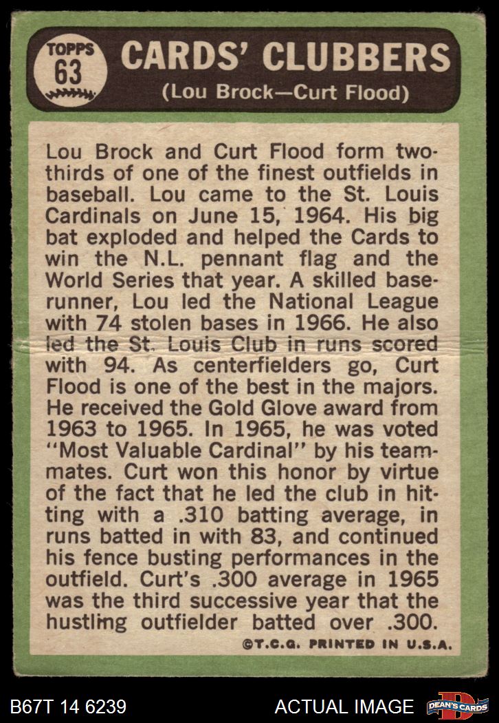 1967 Topps #63 - Lou Brock / Curt Flood Cards Clubbers 1.5 - FAIR