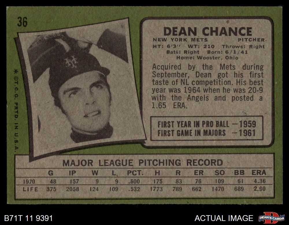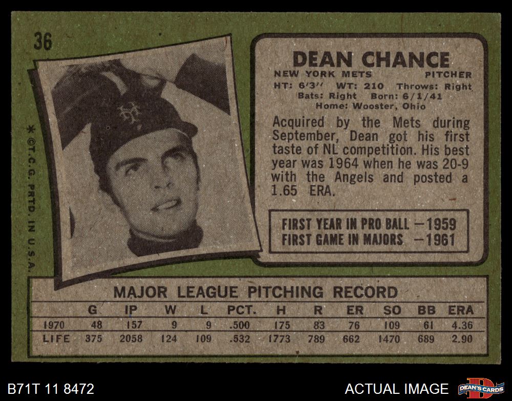 1971 Topps #36 Dean Chance 4 - VG/EX