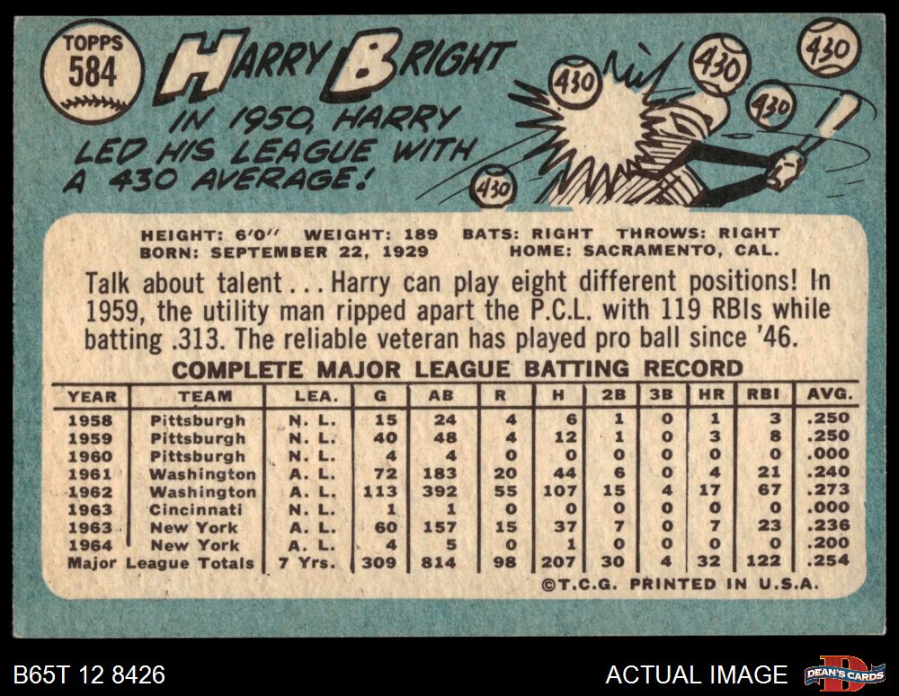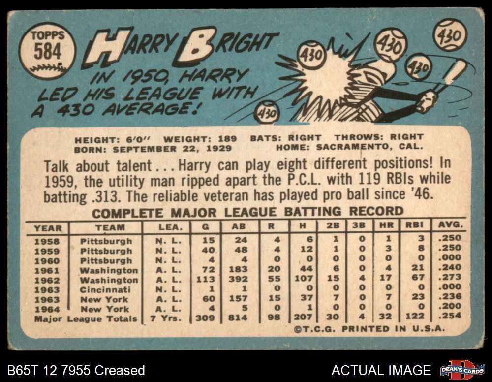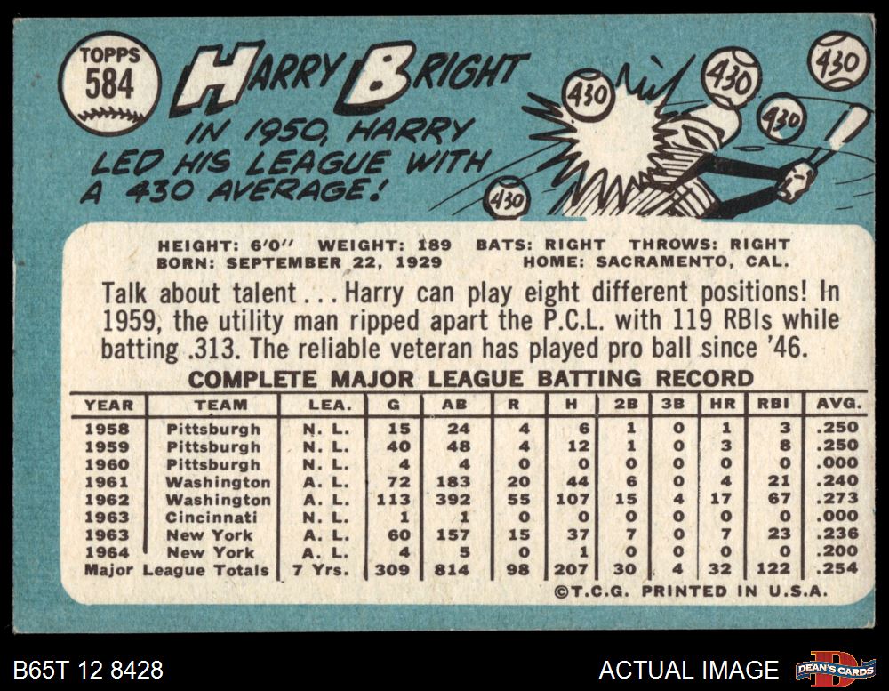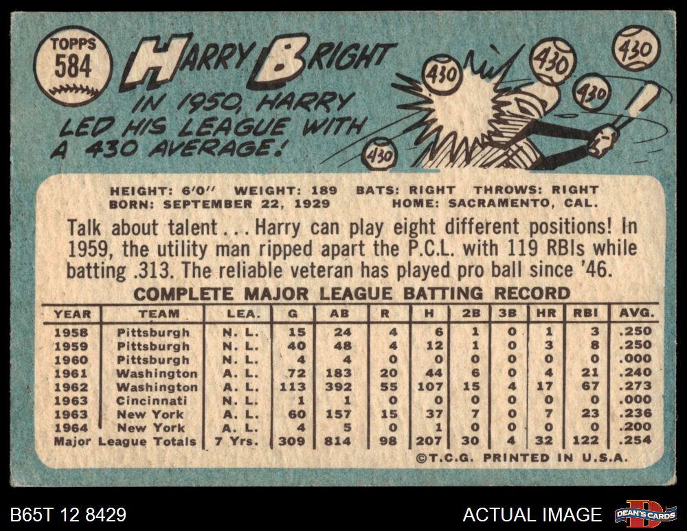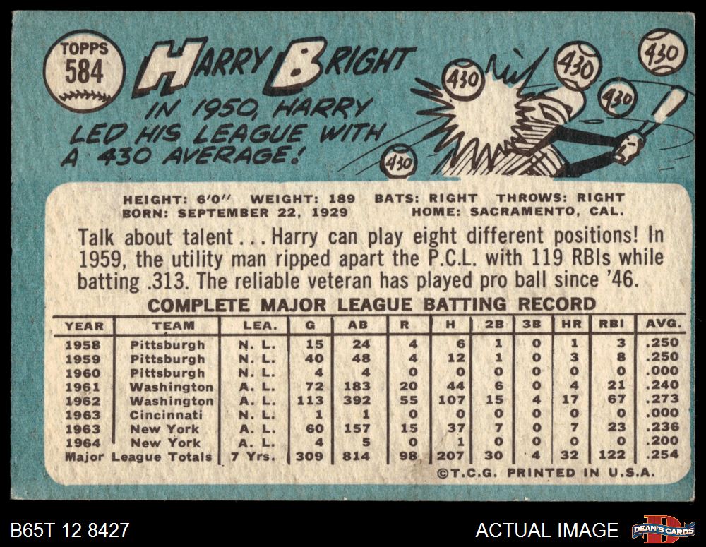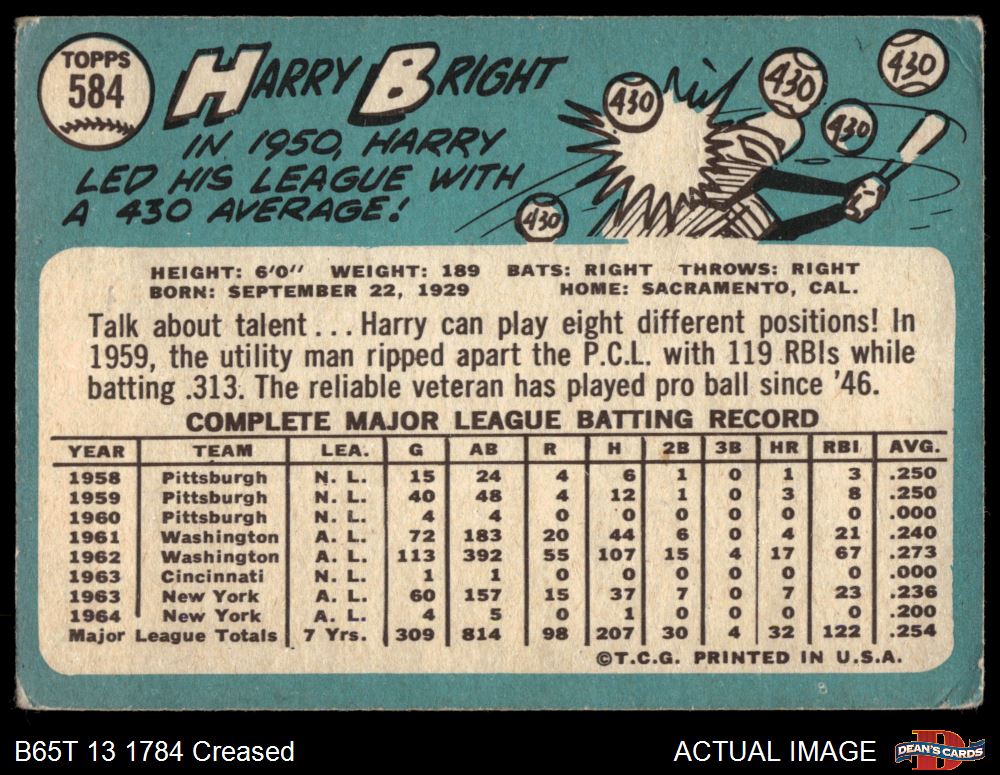 1965 Topps #584 Harry Bright