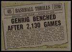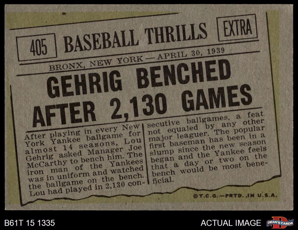 1961 Topps #405 - Lou Gehrig Baseball Thrills 4 - VG/EX