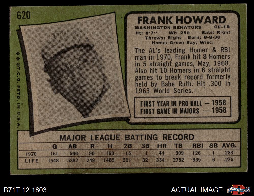 1971 Topps #620 Frank Howard 3.5 - VG+