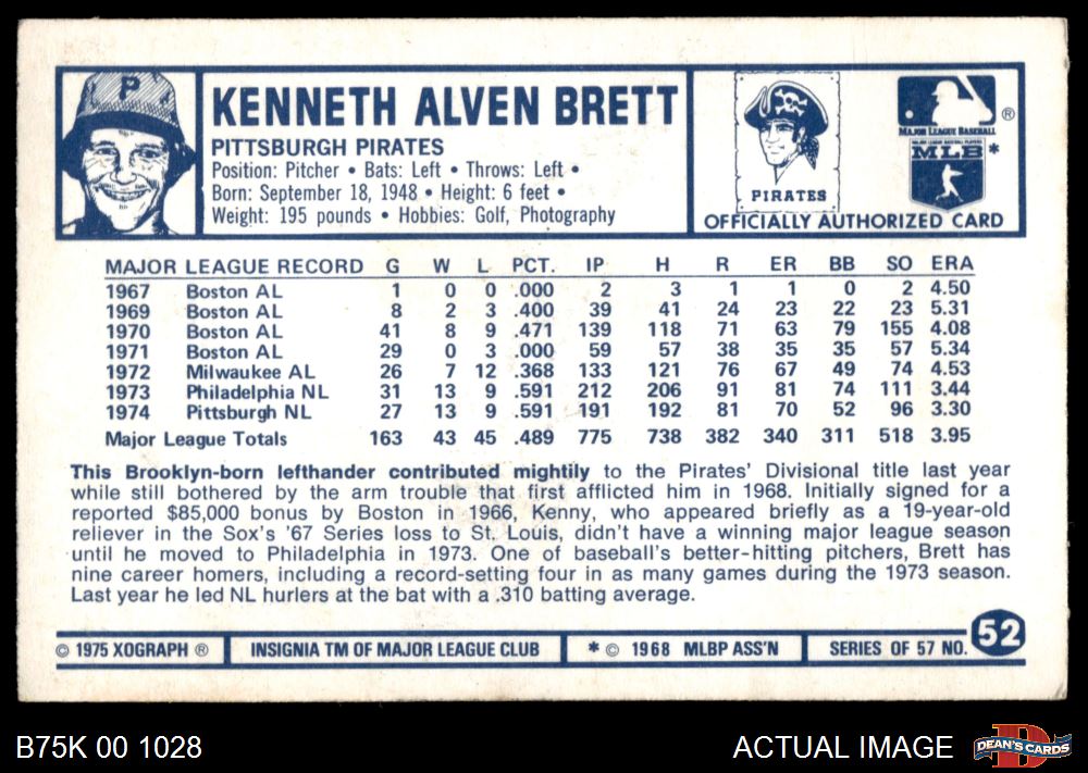 1975 Kellogg's #52 Ken Brett Front Thumbnail