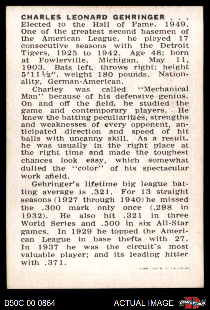 1950 Callahan Hall of Fame WHI Charlie Gehringer 7.5 - NM+