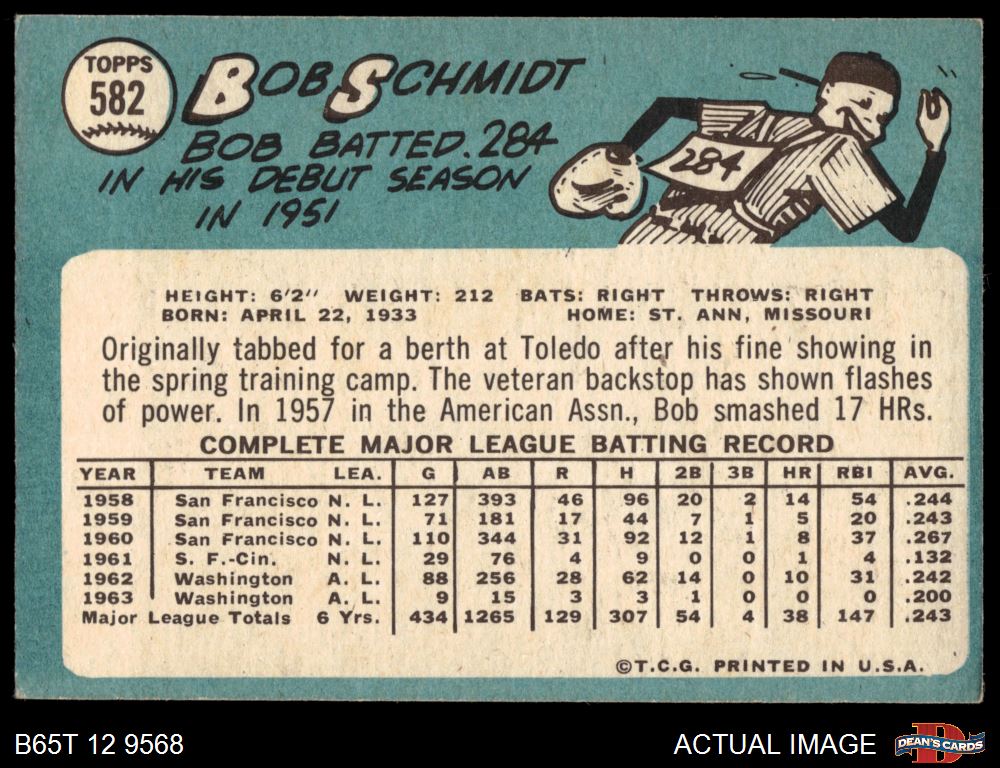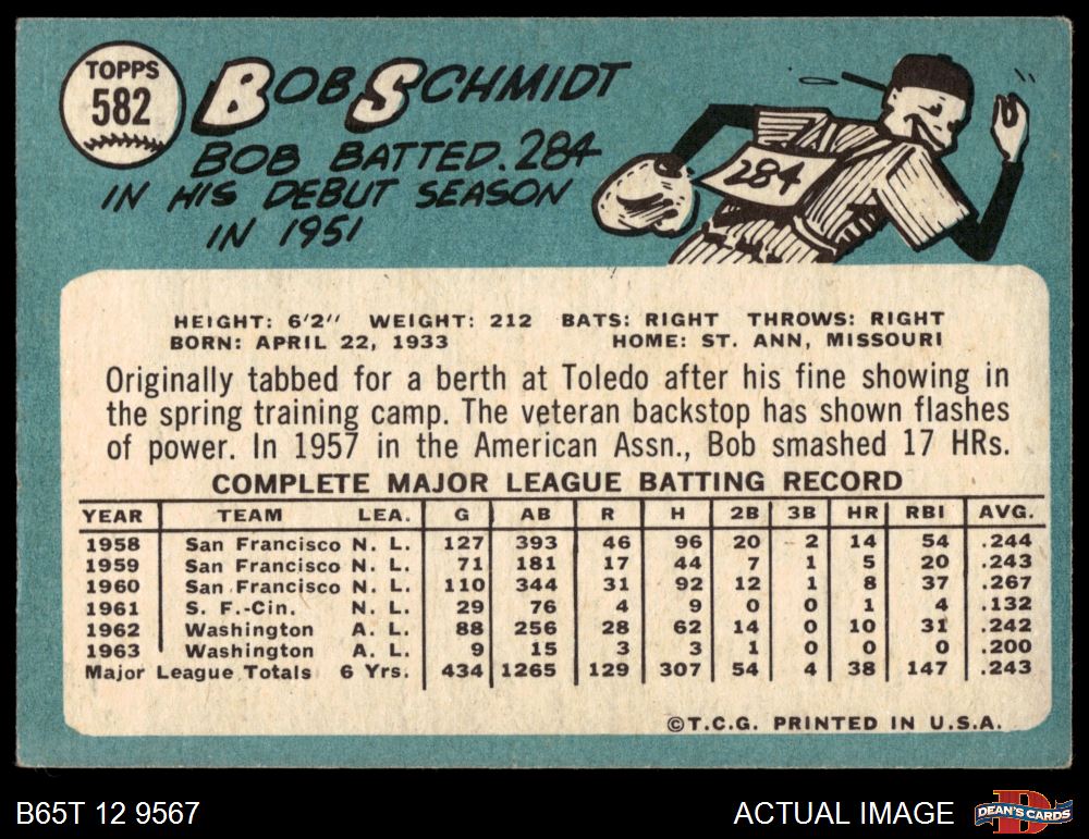 1965 Topps #582 Bob Schmidt