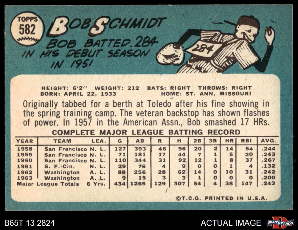 1965 Topps #582 Bob Schmidt 6.5 - EX/MT+