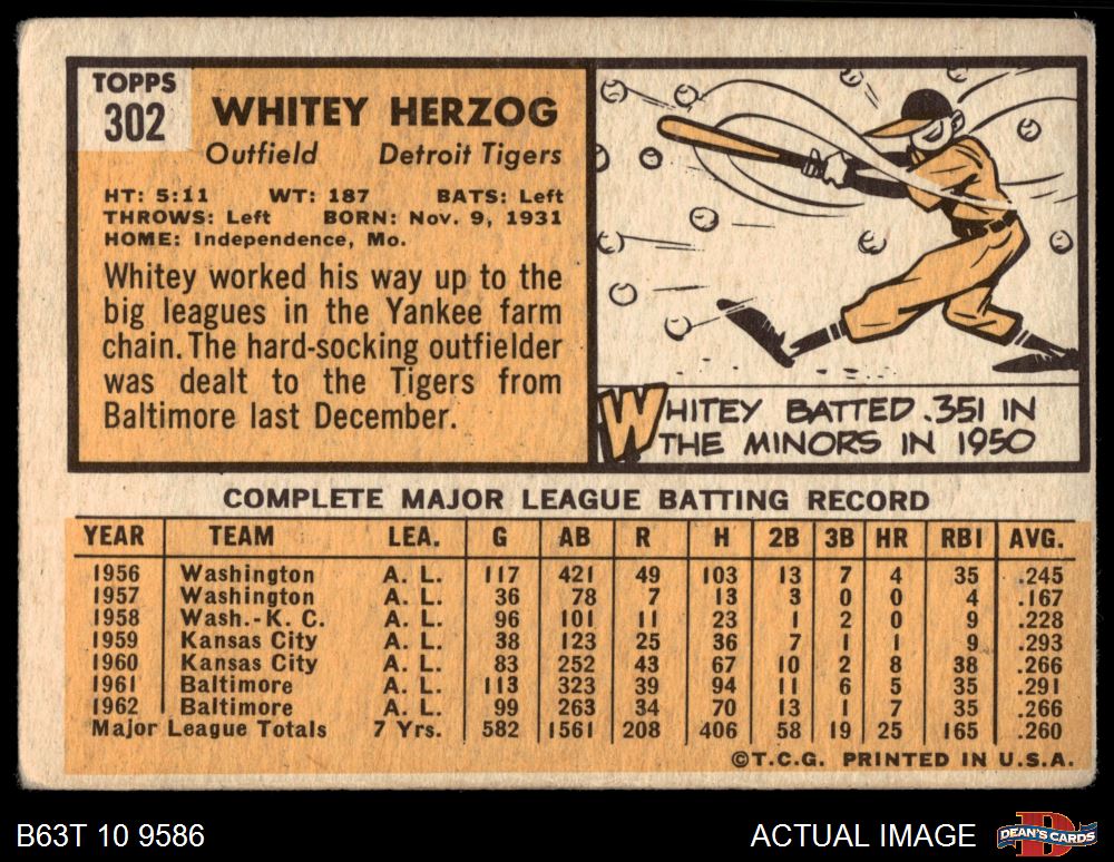 1963 Topps #302 Whitey Herzog 2 - GOOD