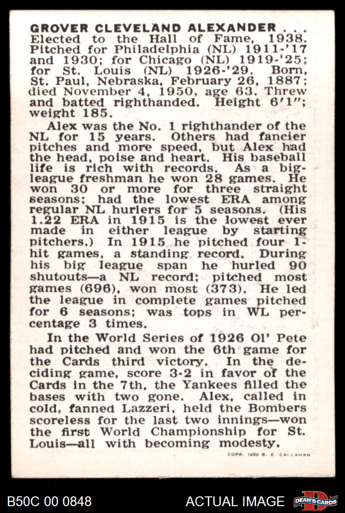 1950 Callahan Hall of Fame Grover Alexander 7 - NM