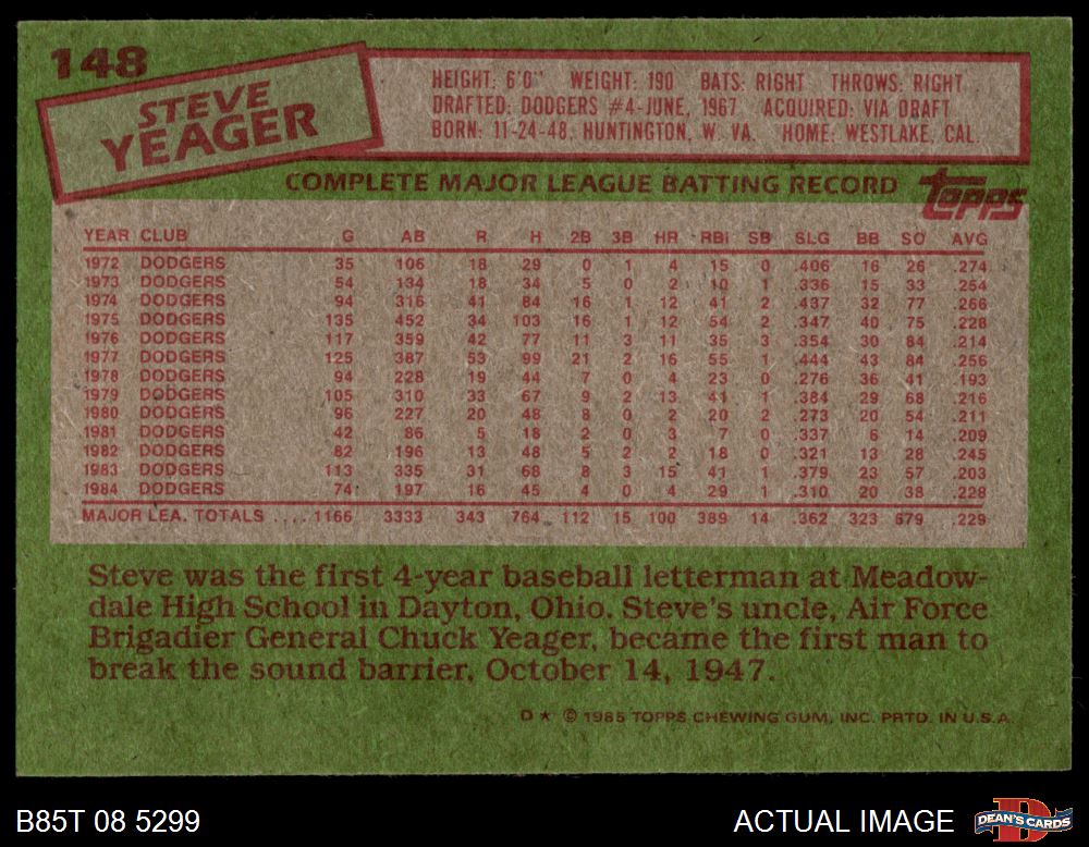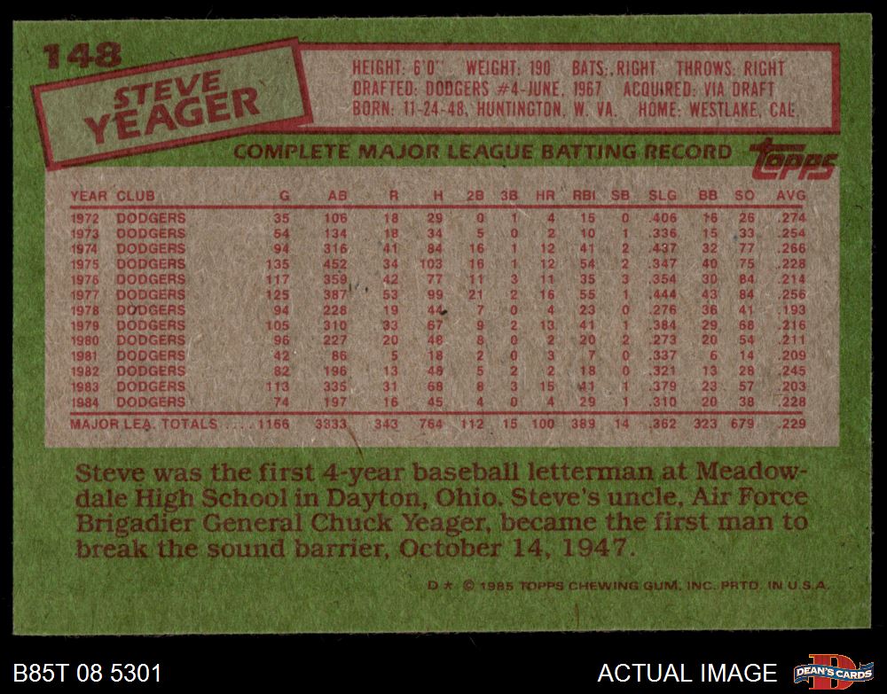 1985 Topps #148 Steve Yeager