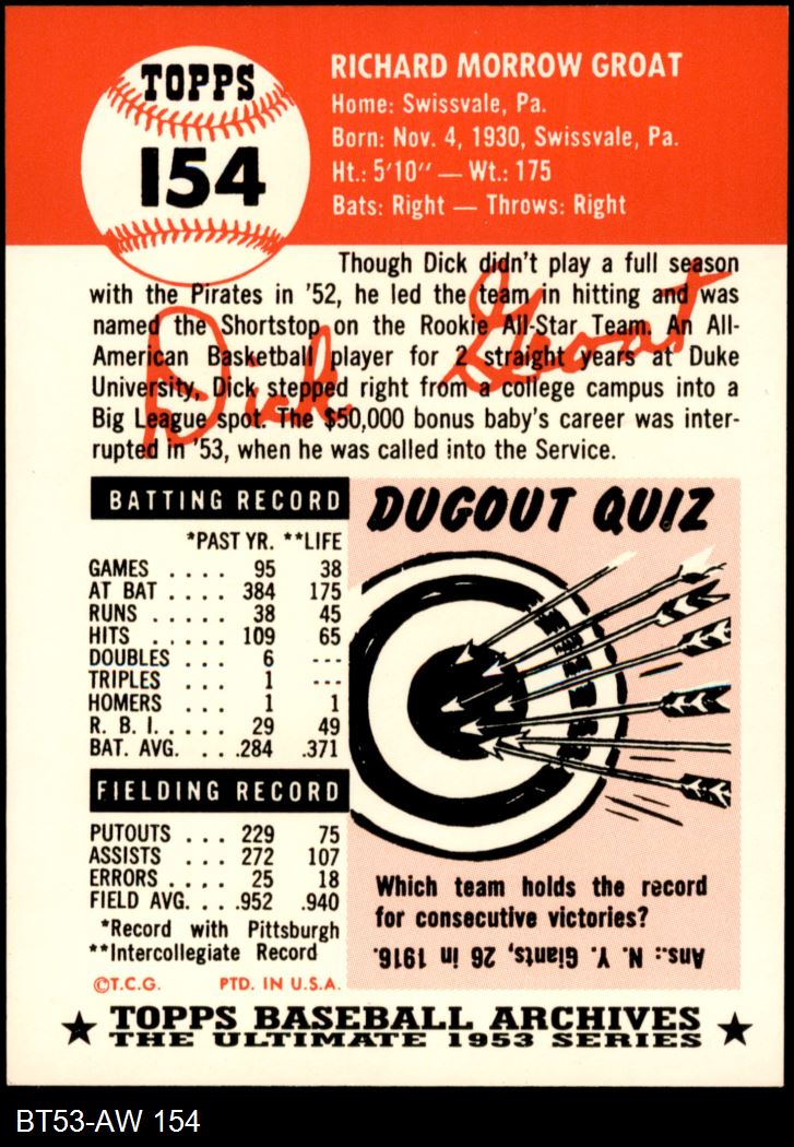 1953 Topps Archives #154 Dick Groat 8 - NM/MT