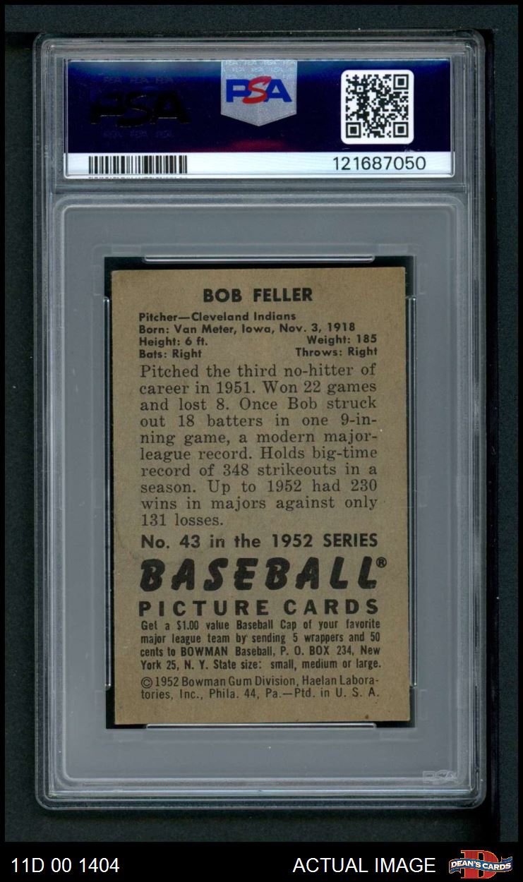 1952 Bowman #43 Bob Feller PSA 5 - EX