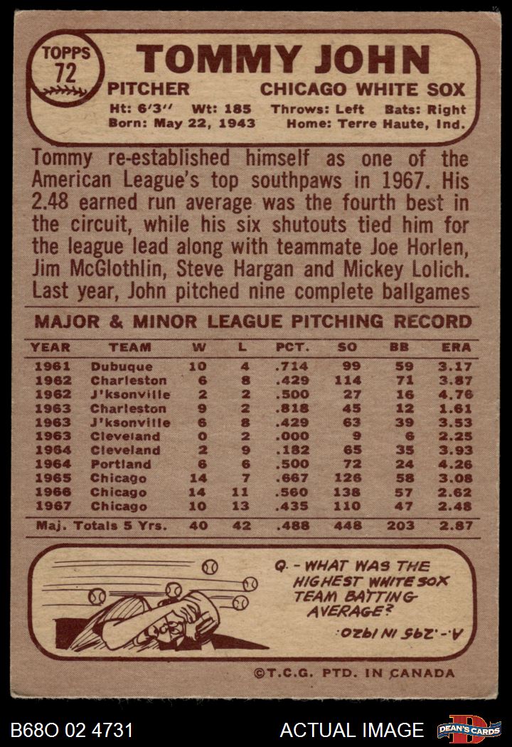1968 O-Pee-Chee #72 Tommy John 4 - VG/EX