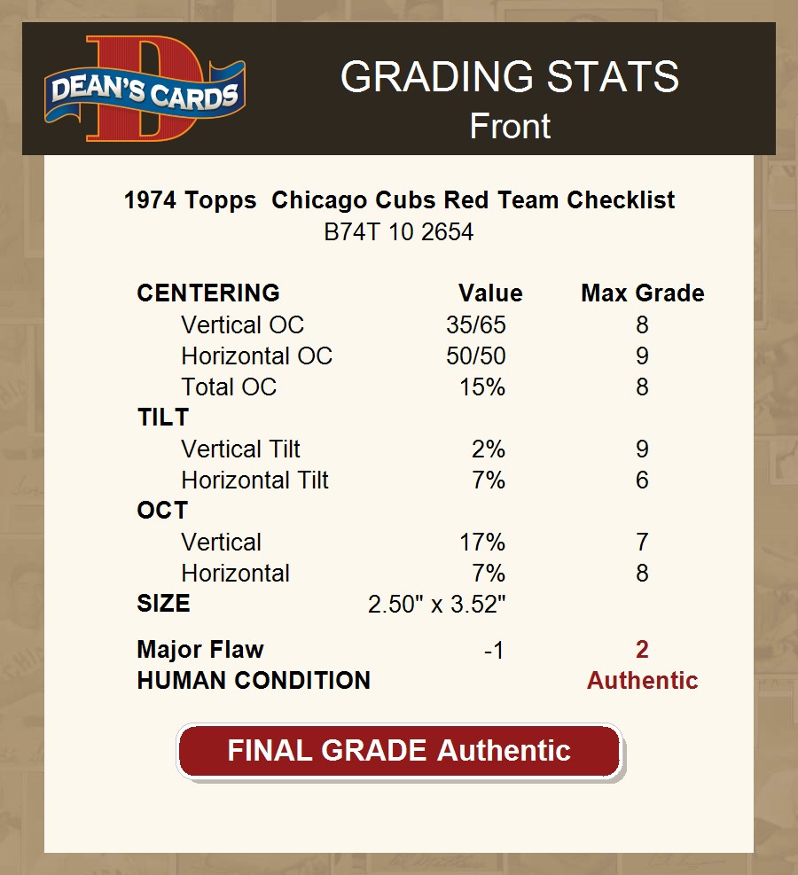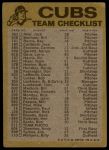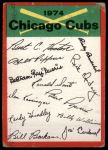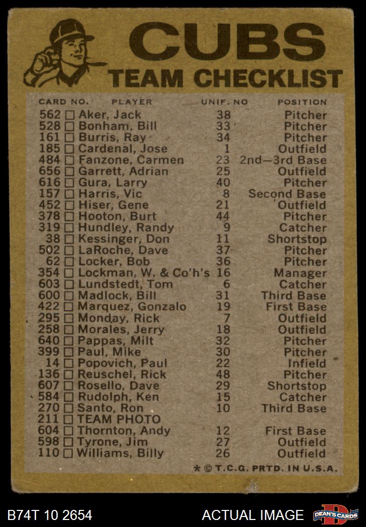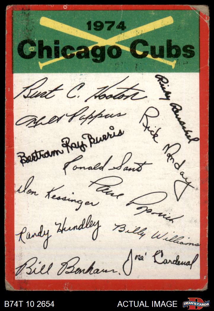 1974 Topps Chicago Cubs Red Team Checklist AUTHENTIC