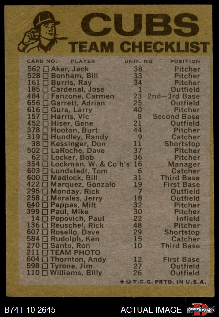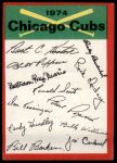 1974 Topps Chicago Cubs Red Team Checklist 1 - POOR
