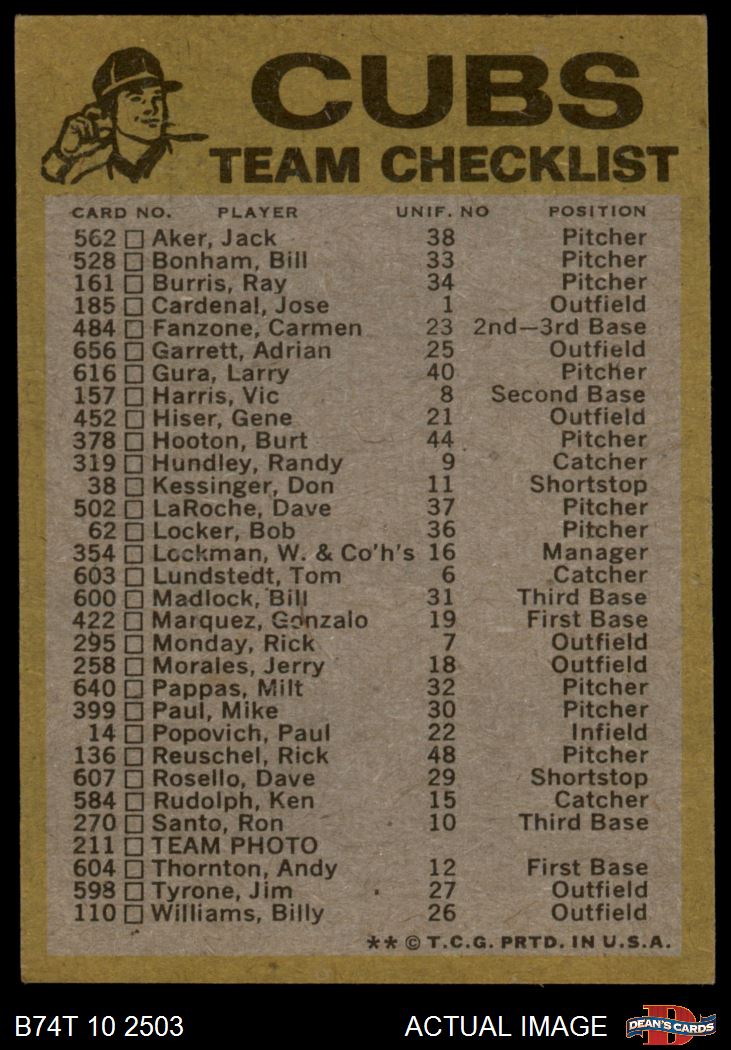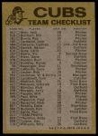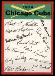 1974 Topps Chicago Cubs Red Team Checklist 6 - EX/MT